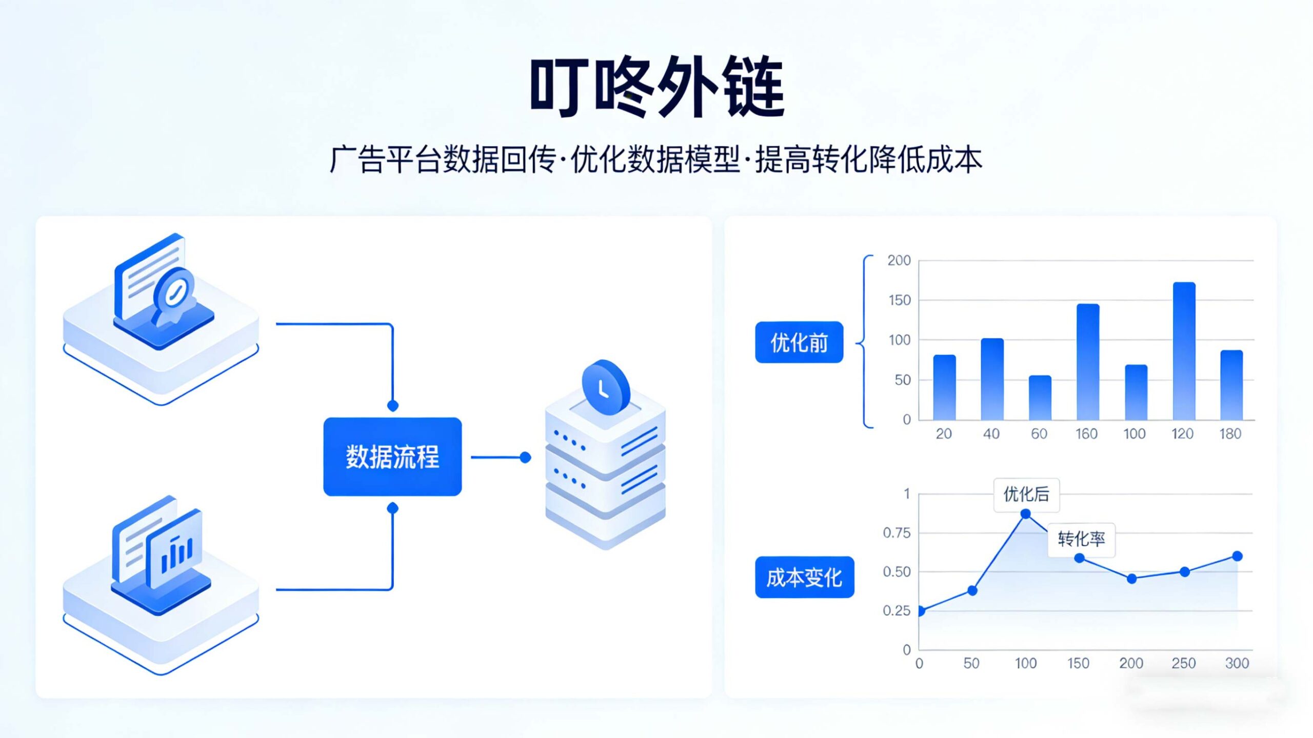 叮咚外链提供专业落地页模版(图文落地页、对话式落地页、问答式落地页等),只需要在巨量广告后台授权就能使用,操作简单。并且,实现深度数据回传功能,如:企微加粉、用户首次/3次/5次/10次开口等关键转化事件,辅助广告模型优化,提高转化,降低成本!同时支持企微员工管理,员工接待策略设置、企微客户标签、加粉统计等等。